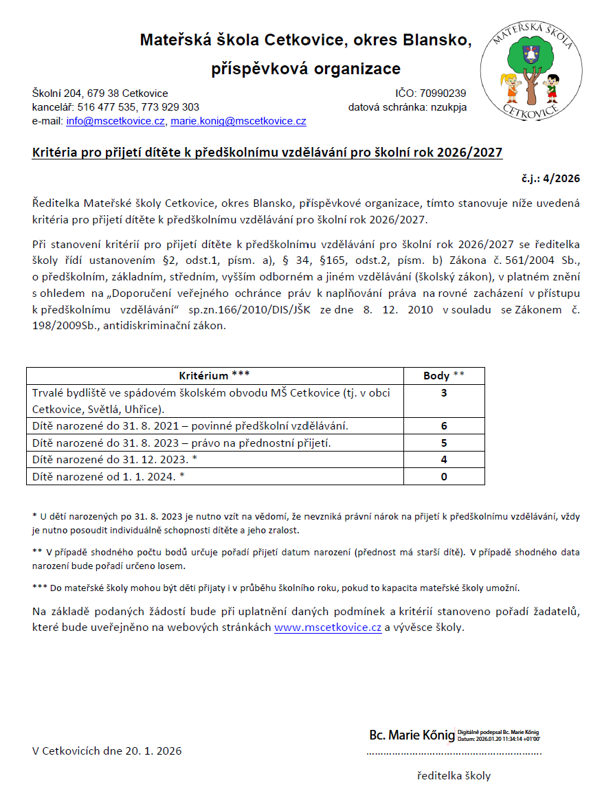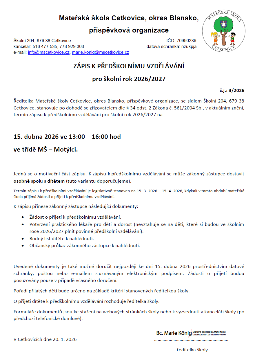 Oznámení - Zápis k předškolnímu vzdělávání pro školní rok 2025/2026